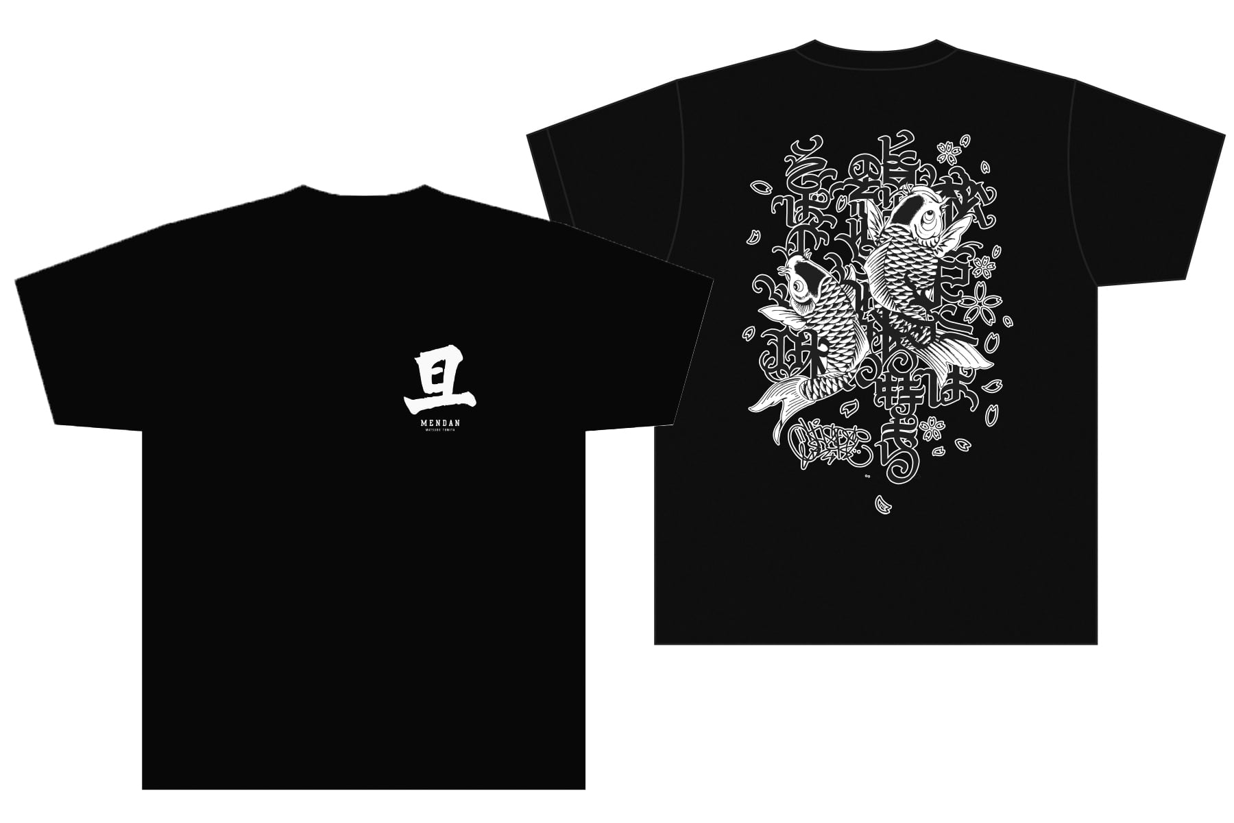 裏面は、山岸マスターの色紙の文字に、とみ田のモチーフ鯉を合わせた物です! デザインは、大阪のグラフィティーライターのCASPER氏にお願いいたしました! 表面の「旦」の文字は書家の金澤翔子さんに書いて頂いております!